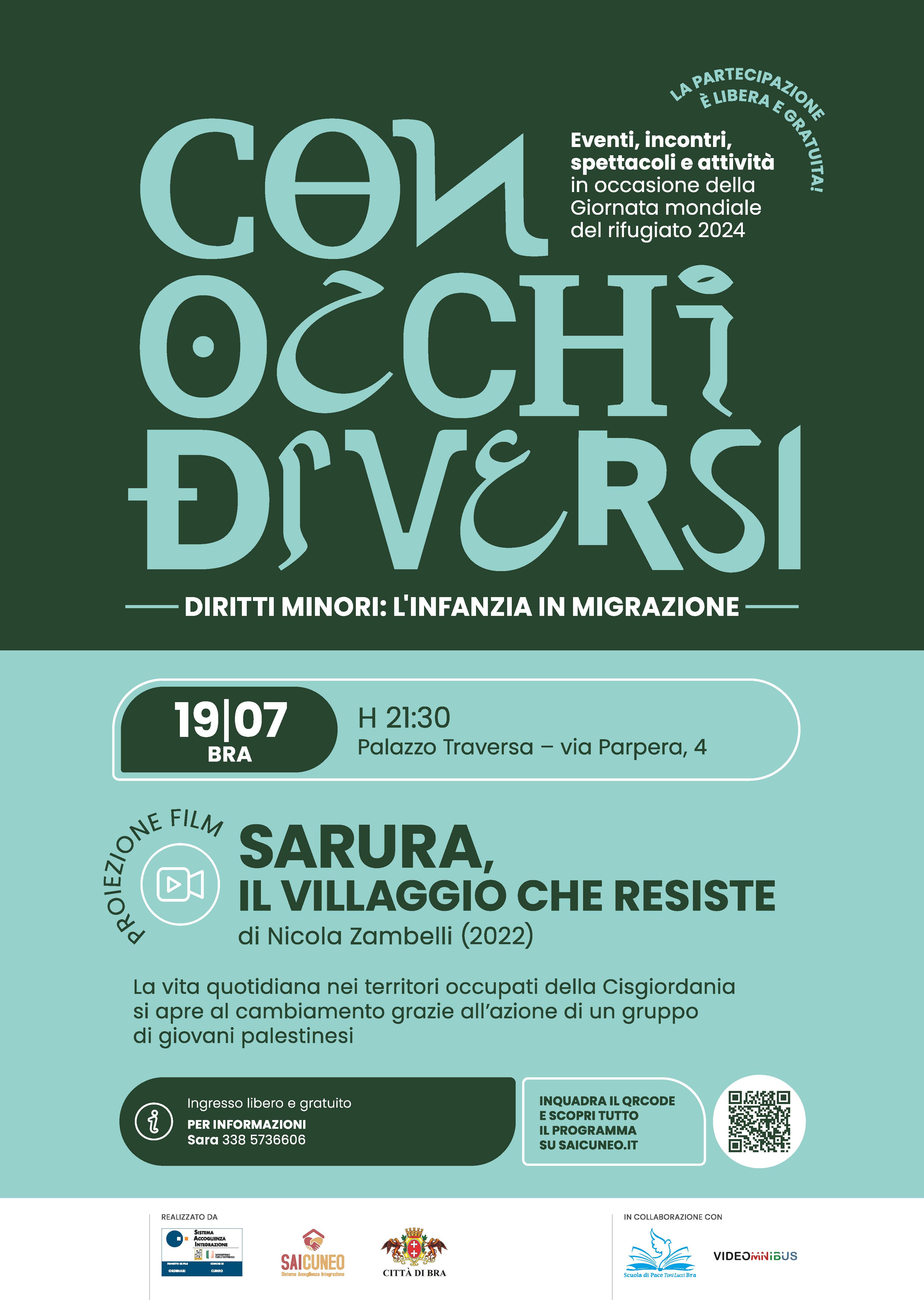 La serata di Bra proporrà al pubblico la proiezione del film di Nicola Zambelli dal titolo “Sarura, il villaggio che resiste” (2022): un’opera che narra la vita quotidiana nei territori occupati della Cisgiordania, che si apre al cambiamento grazie all’azione di un gruppo di giovani palestinesi.