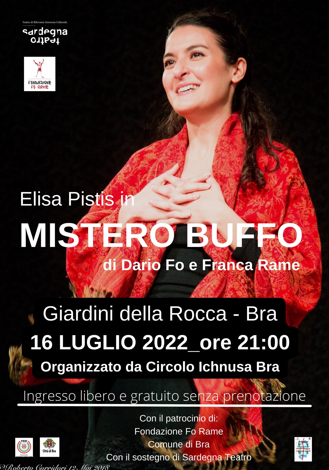 Lo spettacolo, organizzato dal Comune di Bra in collaborazione con l’associazione Ichnusa, il patrocinio della Fondazione Fo Rame e il sostegno di Sardegna Teatro, andrà in scena sul palco allestito nei giardini del Belvedere della Rocca. Ingresso libero fino ad esaurimento posti. Maggiori informazioni chiamando l’Ufficio Turismo e Cultura del Comune allo 0172-430185 o scrivendo a turismo@comune.bra.cn.it.