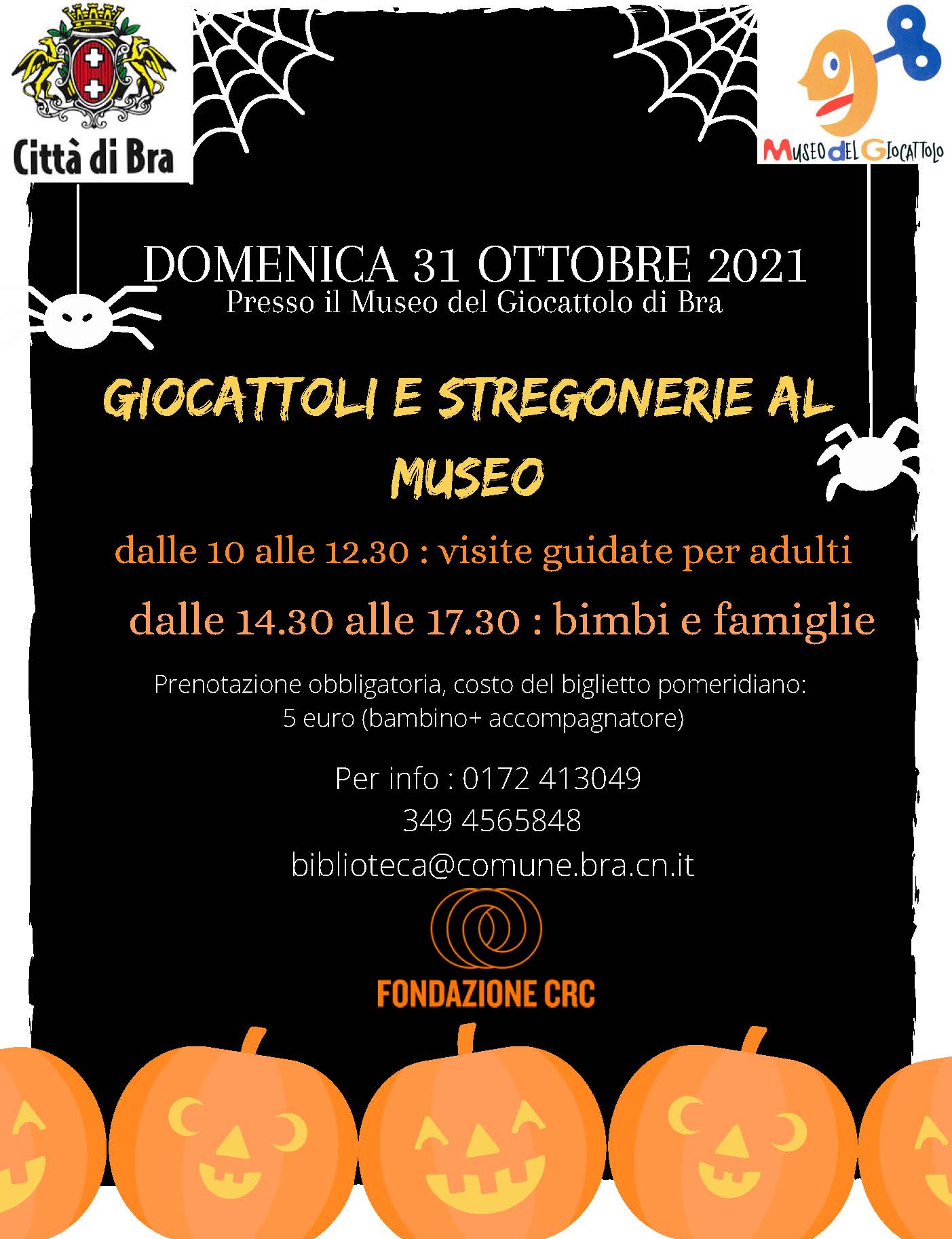 Il pomeriggio vedrà protagonista l’iniziativa “Giocattoli e stregonerie al museo”, che oltre alla visita comprende un laboratorio nel quale verrà realizzato un oggetto ludico. Sono previsti due turni della durata di 1 ora e 30 minuti: il primo (dalle 14,30 alle 16) sarà dedicato ai bimbi più piccoli (3- 6 anni), mentre dalle 16 alle 17,30 spazio a quelli più grandi (7- 10 anni). Il costo è di 5 euro per ogni bambino partecipante, comprensivi della presenza di un adulto accompagnatore. Prenotazione obbligatoria chiamando lo 0172-413049 o scrivendo a biblioteca@comune.bra.cn.it. Prenotazioni domenicali al 349-4565848.