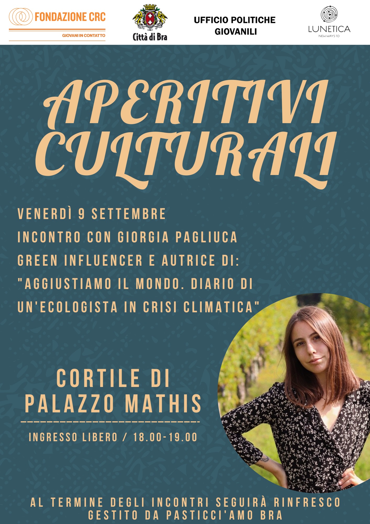Il progetto “Aperitivi culturali” è finanziato dalla Fondazione Crc nell’ambito del bando “Giovani in contatto” ed è realizzato con la collaborazione della cooperativa sociale Lunetica.