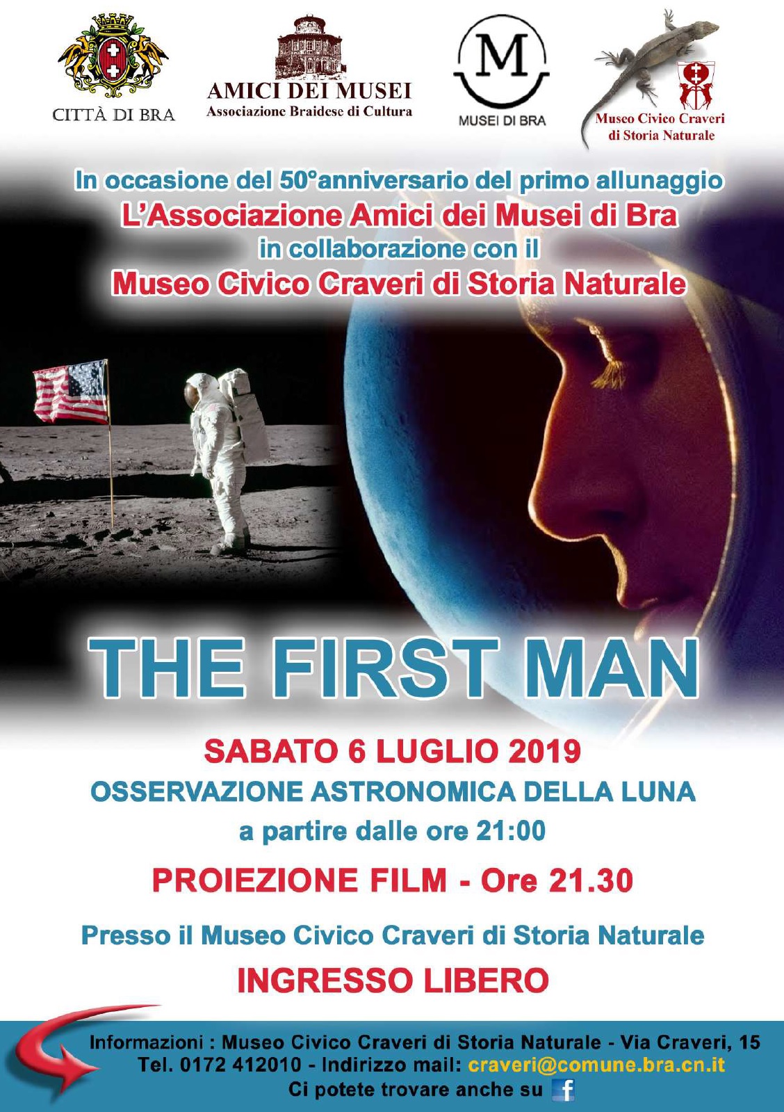 L’Associazione “Amici dei Musei” di Bra, in collaborazione con il Museo civico di Storia Naturale “Craveri”, sabato 6 luglio 2019 organizza una serata dedicata al 50° anniversario del primo allunaggio. A partire dalle 21 nel giardino del Museo è in programma l’osservazione astronomica del nostro satellite, mentre alle 21.30 verrà proiettato il film “First man – il primo uomo” diretto da Damien Chazelle (già regista di “La La Land”), storia della missione Apollo 11 della NASA durante la quale Neil Armstrong fu il primo uomo a mettere piede sulla Luna: era il 20 luglio del 1969.