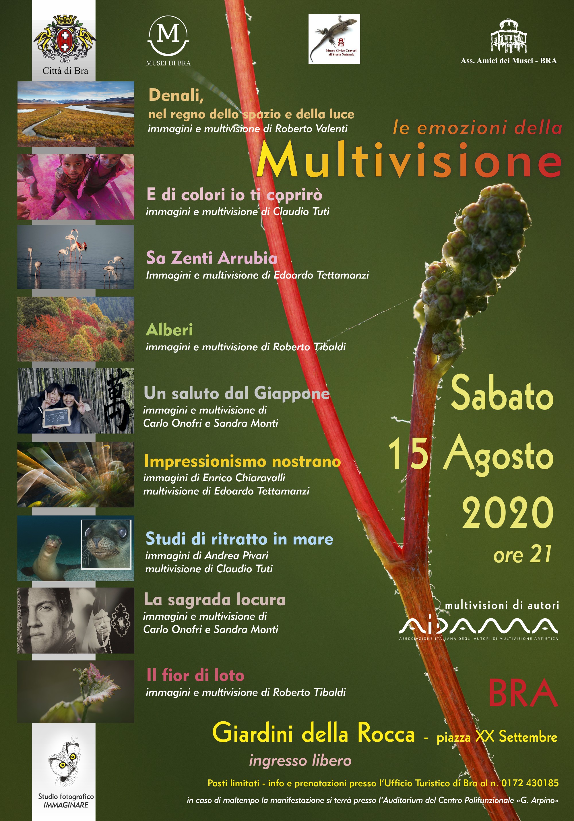 Bra punta sulla cultura e sull’intrattenimento di qualità per il Ferragosto in città. Ormai tradizionale appuntamento di metà agosto, sabato 15 alle 21.30 ai Giardini del Belvedere andrà in scena lo spettacolo della Multivisione. Una serata che guiderà i partecipanti in un coinvolgente viaggio tra le emozioni, attraverso immagini che spaziano tra natura, colori, dettagli, paesaggi vicini e lontani catturati dai fotografi e sapientemente accostati a note e suoni dagli autori della multivisione A.I.D.A.M.A.