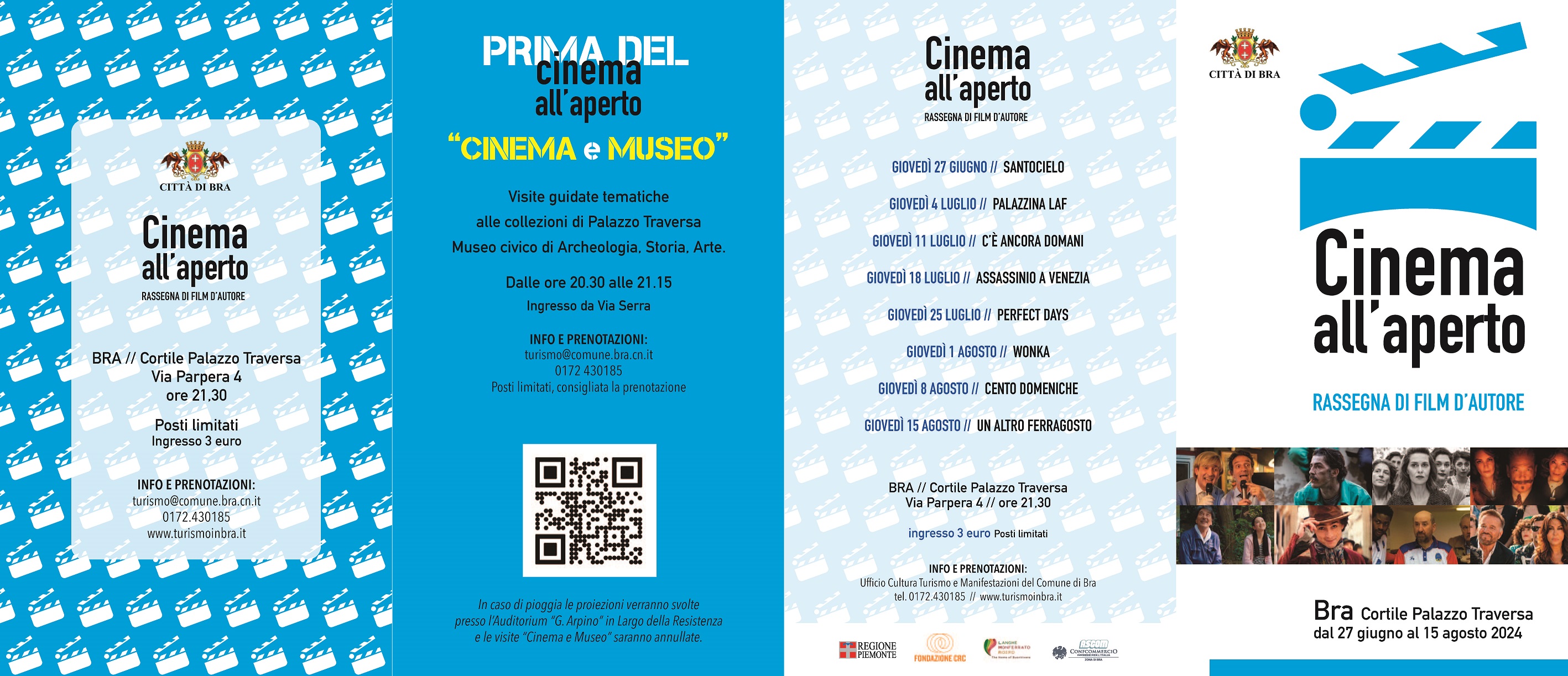 L’inizio delle proiezioni è previsto per le 21.30. nel cortile di Palazzo Traversa (via Parpera, 4). L’ingresso costa 3 euro e i posti sono limitati: si consiglia la prenotazione all’Ufficio Cultura e Manifestazioni, chiamando il numero 0172-430185 o scrivendo a turismo@comune.bra.cn.it.