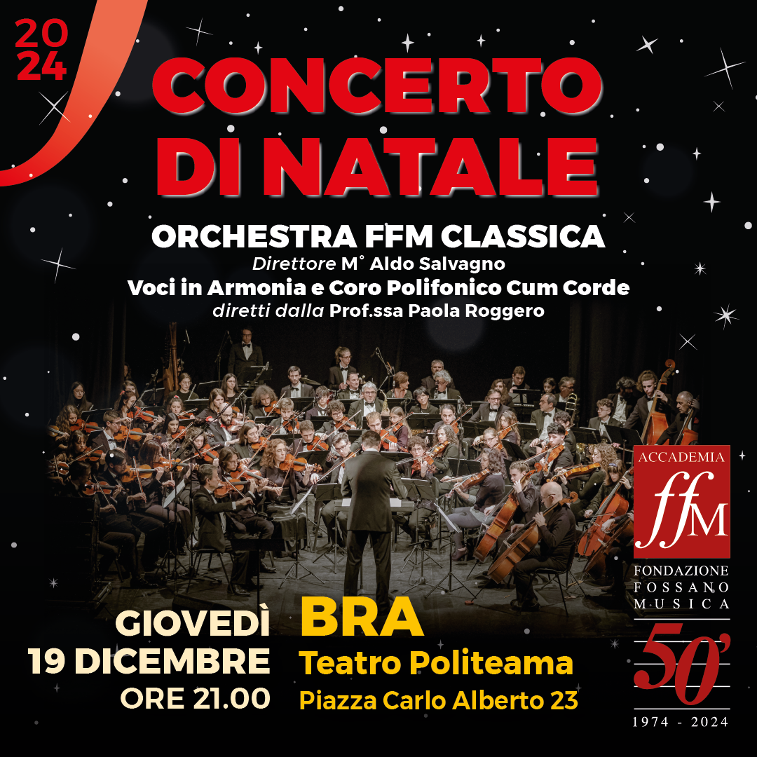 L’Istituto Civico Musicale “A. Gandino” e la Fondazione Fossano Musica organizzano il tradizionale Concerto di Natale, un evento che celebra la magia e l’atmosfera delle festività con un programma ricco e variegato, in programma per giovedì 19 dicembre 2024 a partire dalle 21 presso il teatro Politeama Boglione. L’ingresso è gratuito.