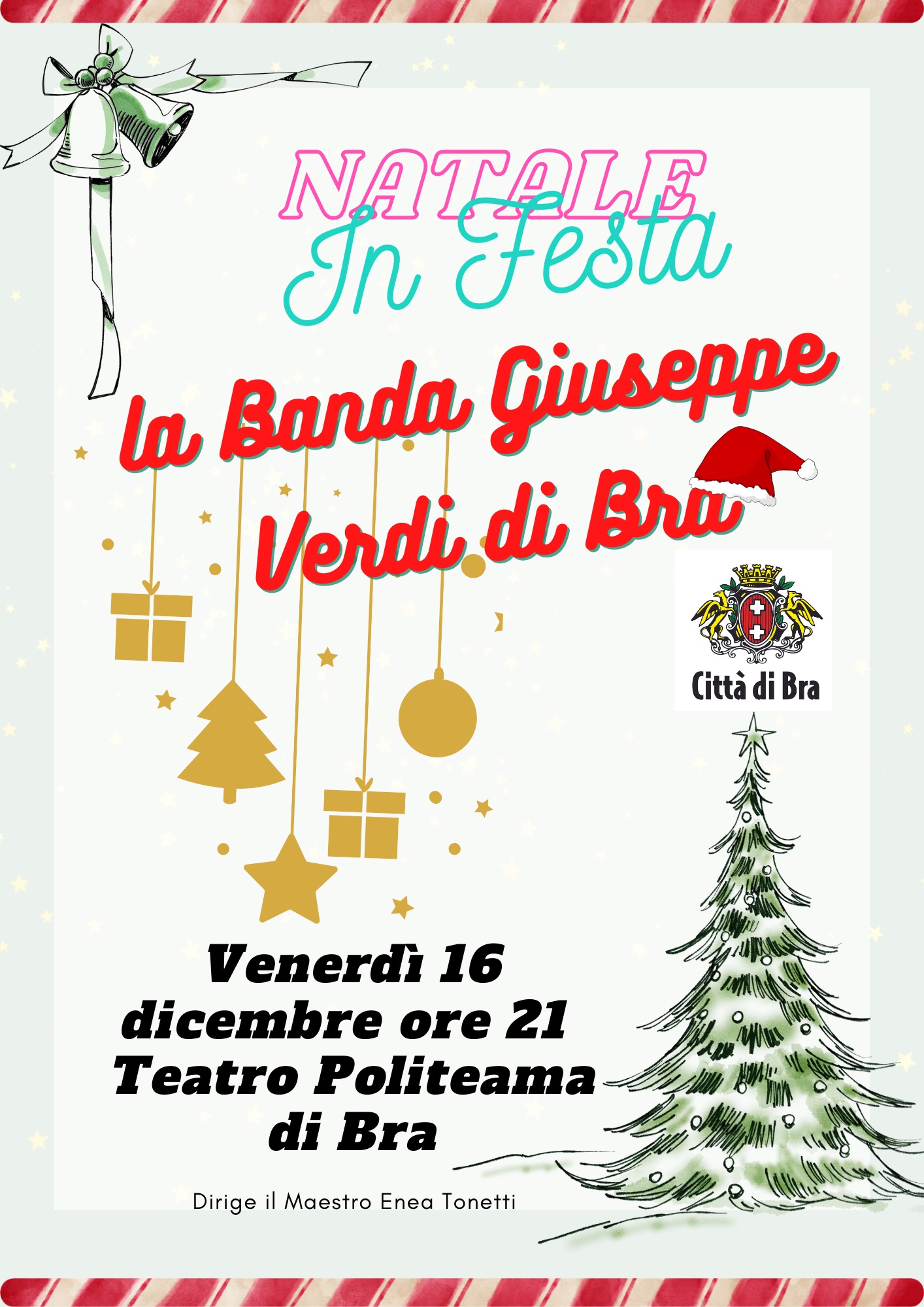 Tradizionale appuntamento con il “Concerto di Natale” della banda musicale “Giuseppe Verdi” di Bra. La serata, sempre molto attesa sotto la Zizzola, è in programma per venerdì 16 dicembre 2022 alle 21 presso il teatro Politeama Boglione. L’ensemble diretto dal maestro Enea Tonetti intratterrà gli ospiti con una serie di brani dedicati al particolare periodo dell’anno, tra cui diverse musiche composte da Leonard Bernstein per “West Side Story”, uno dei musical più rappresentati al mondo, nonché uno dei capolavori di George Gershwin, la “Rapsodia in blu”. Ma non mancheranno le sorprese!