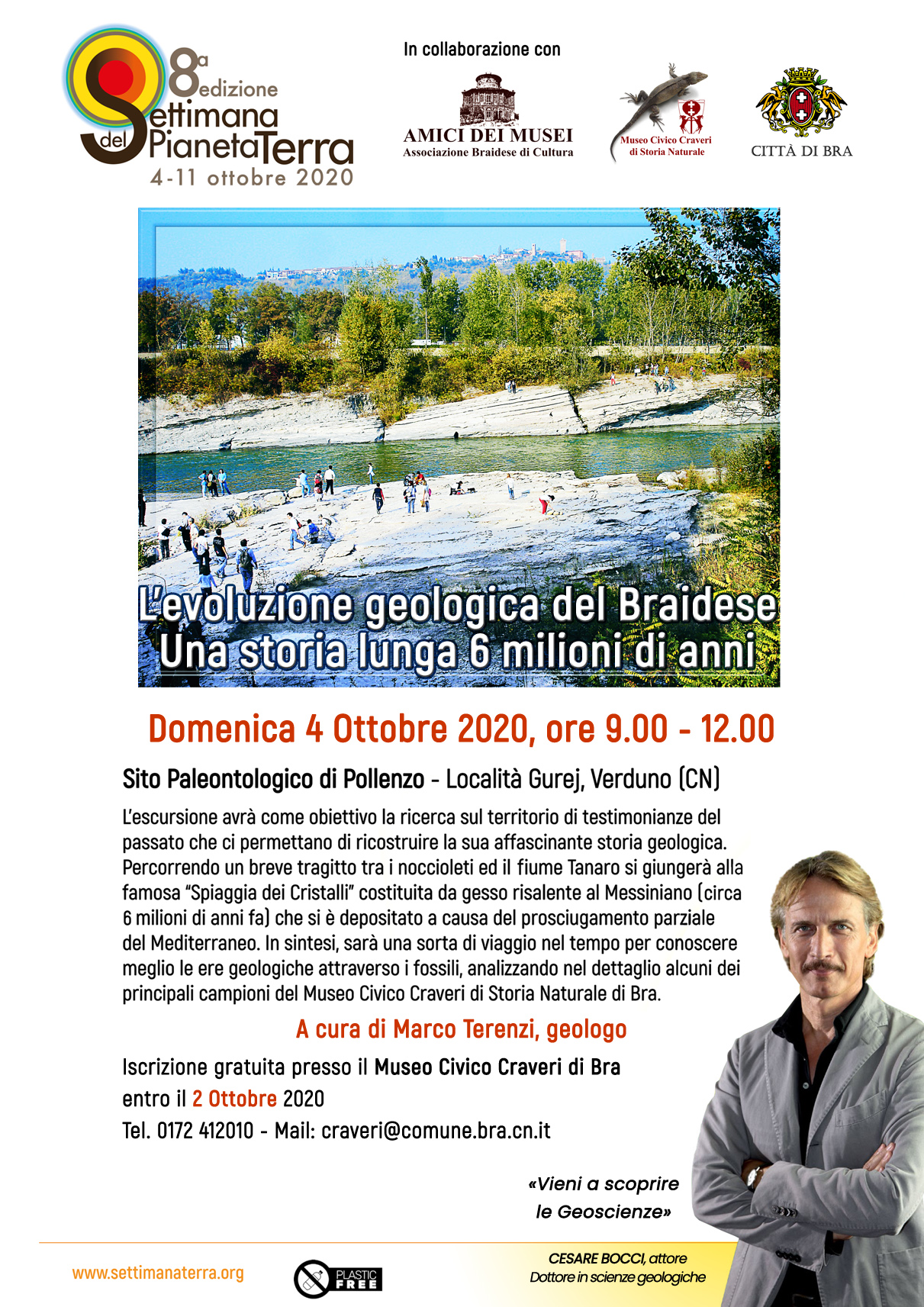 Anche quest’anno il Museo civico “Craveri” di Storia Naturale, in collaborazione con l’associazione “Amici dei Musei” di Bra, aderisce alla “Settimana del Pianeta Terra – L’Italia alla scoperta delle Geoscienze”, festival di divulgazione scientifica giunto alla sua ottava edizione. L’appuntamento è per domenica 4 ottobre 2020, quando il geologo Marco Terenzi guiderà i partecipanti in una escursione al sito paleontologico di Verduno (località Gurej) alla scoperta dell’evoluzione geologica subita dal territorio braidese nell’arco di 6 milioni di anni.