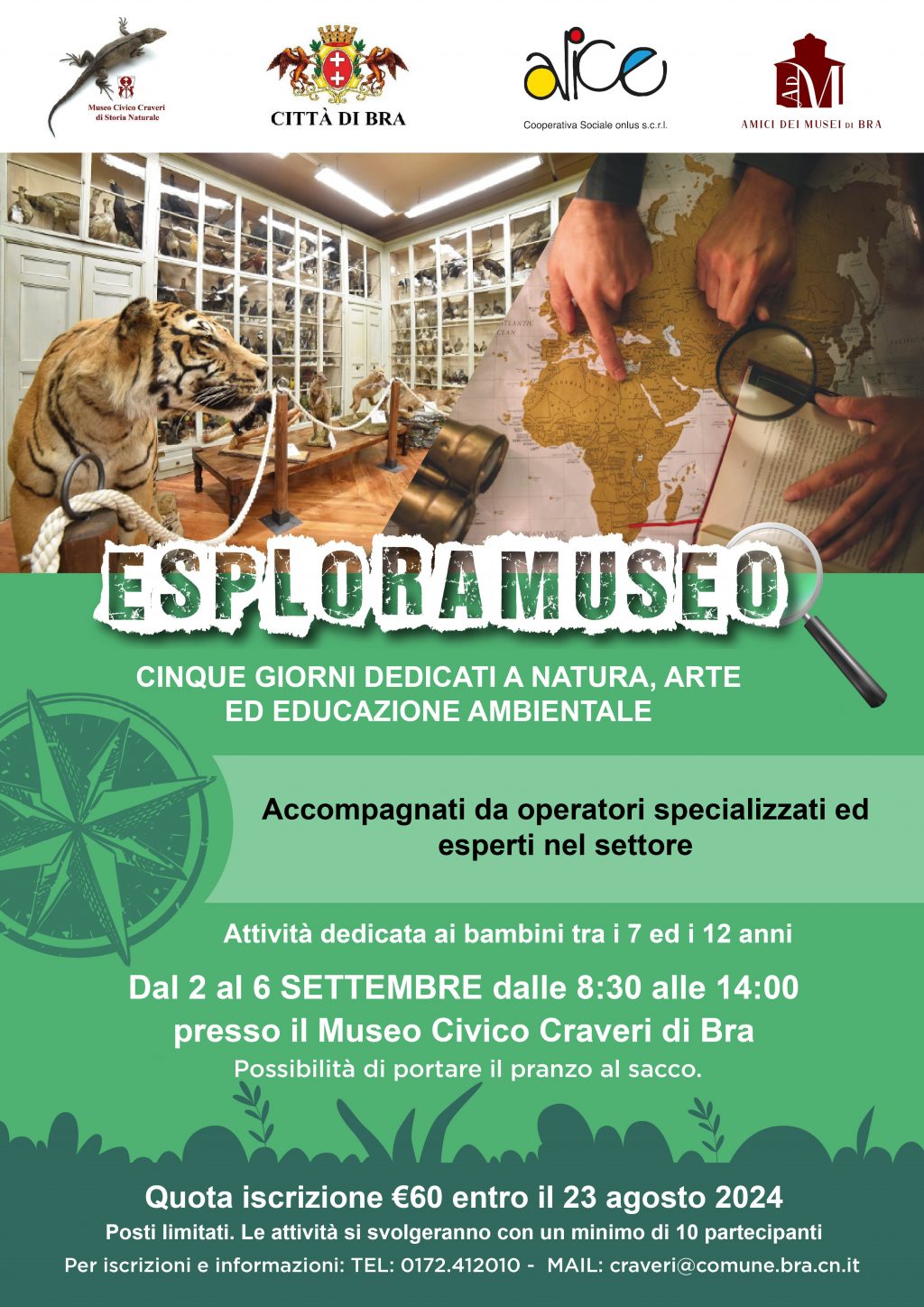 Nuovo appuntamento estivo dedicato ai bambini e alle bambine tra i 7 e i 12 anni al Museo civico “Craveri” di Storia Naturale di Bra: dal 2 al 6 settembre arriva “EsploraMuseo 2024”, una settimana di attività e laboratori dalle 8.30 alle 14, con possibilità di portare il pranzo al sacco.
