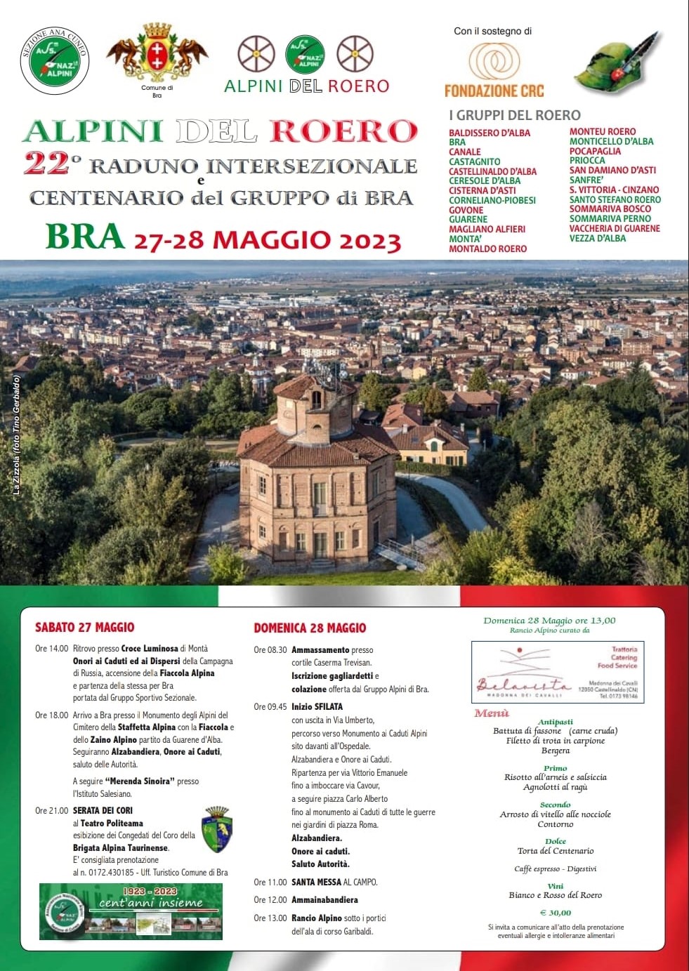 Ora le celebrazioni per il centenario delle Penne Nere braidesi giunge al suo momento clou e la festa raddoppia visto che nelle giornate del 27 e 28 maggio 2023 la città della Zizzola ospiterà anche il Raduno Alpino del Roero.