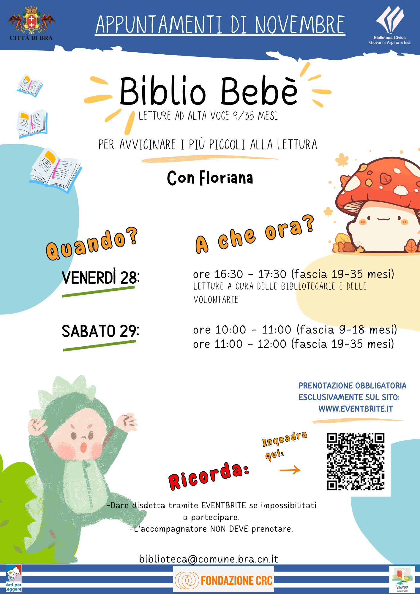 Tutti gli eventi organizzati dalla biblioteca rientrano nell’ambito del del progetto “Il piacere della lettura” della Fondazione CRC all’interno della rete “Vitamina, rinforzo culturale per una comunità in crescita!”.