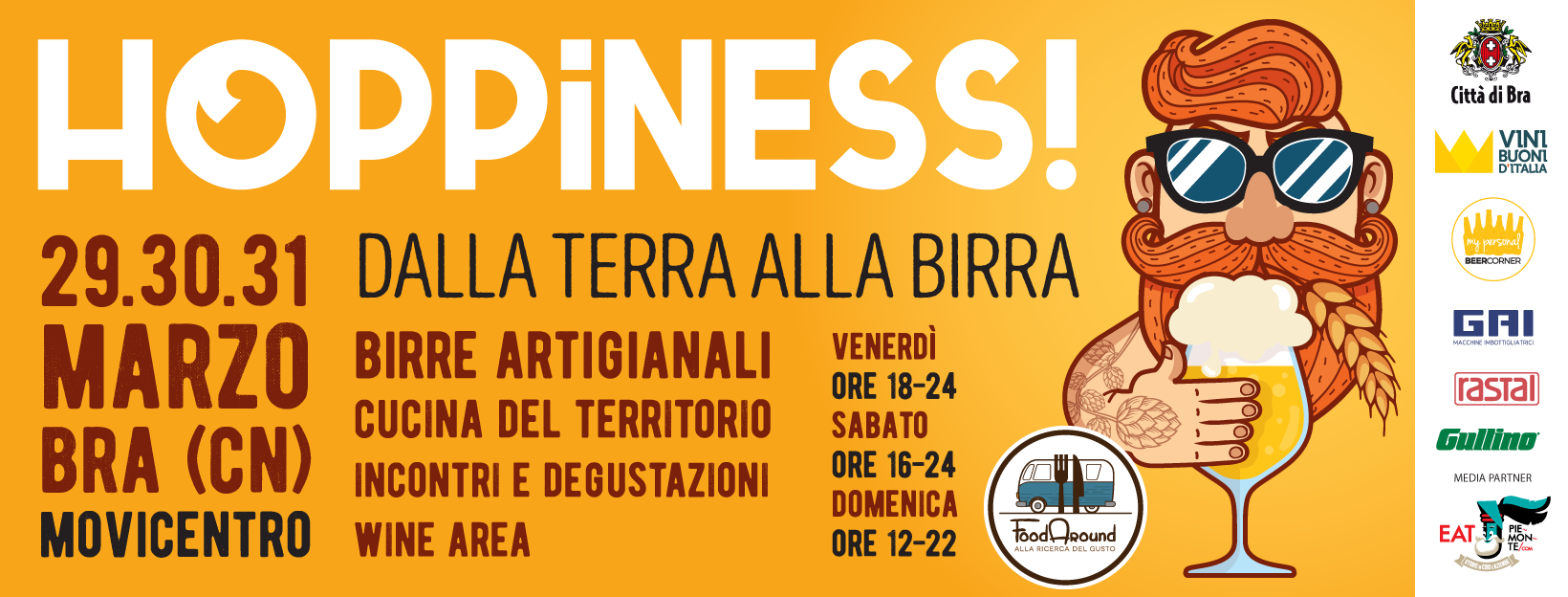 A Bra da venerdì 29 a domenica 31 marzo 2019 arriva “Hoppiness. Dalla terra alla birra”: tre giorni dedicati alle birre artigianali, alla cucina del territorio, ai vini e ad incontri e degustazioni. Un evento organizzato dall’Associazione Culturale Enogastronomica FoodAround in collaborazione con la Città di Bra e la partecipazione del progetto My Personal Beer Corner e della guida Vinibuoni d’Italia edita dal Touring Club Italiano.