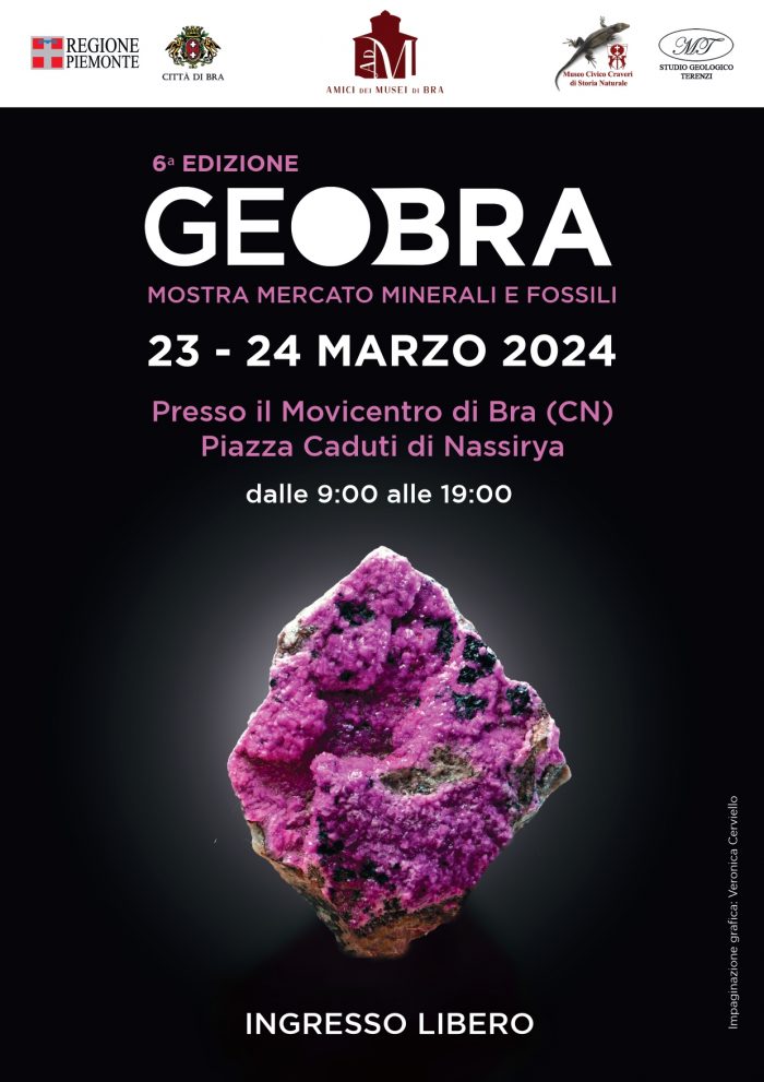 Torna dopo il successo delle scorse edizioni, con il patrocinio della Città di Bra e della Regione Piemonte, la mostra mercato di minerali e fossili “GeoBra”, che si terrà nelle date di sabato 23 e domenica 24 marzo presso i locali del Movicentro di piazza Nassiriya in Bra, vicino alla stazione ferroviaria.