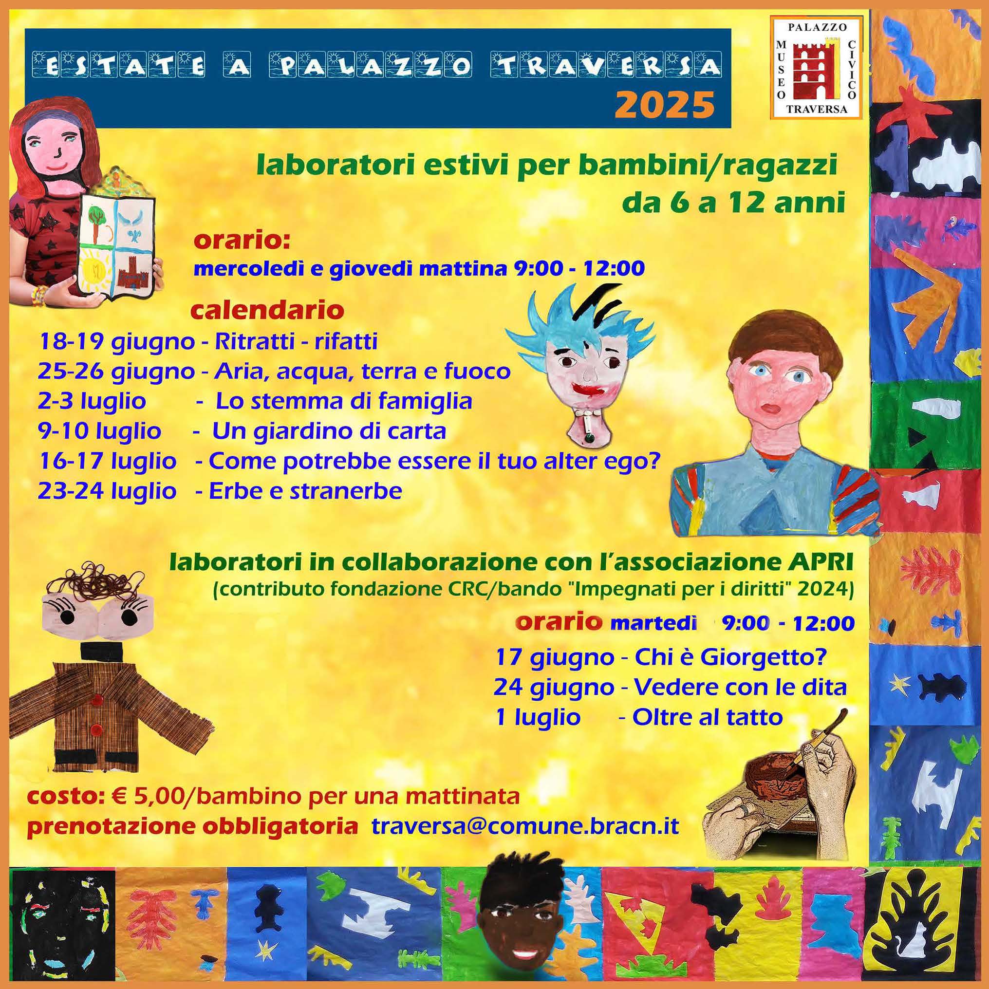 Inoltre, quest’anno il Museo di Palazzo Traversa propone altri tre laboratori promossi dall’associazione Apri (Associazione Pro Retinopatici ed Ipovedenti del terzo settore) con il contributo Fondazione Crc elargito nell’ambito del bando “Impegnati per i diritti” 2024, che si terranno il martedì sempre dalle 9 alle 12.