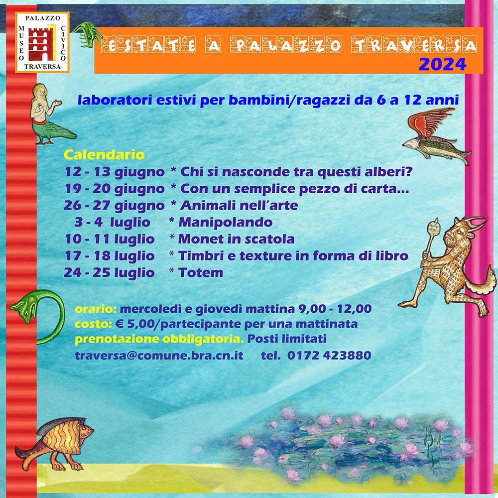 Ritornano i laboratori estivi per bambini a Palazzo Traversa. Il Museo civico di archeologia, storia e arte offre infatti per i mesi di giugno e luglio due appuntamenti settimanali dedicati ai giovani dai 6 ai 12 anni. I laboratori si tengono tutti i mercoledì e giovedì mattina dalle 9 alle 12 al costo di 5 euro a mattinata.