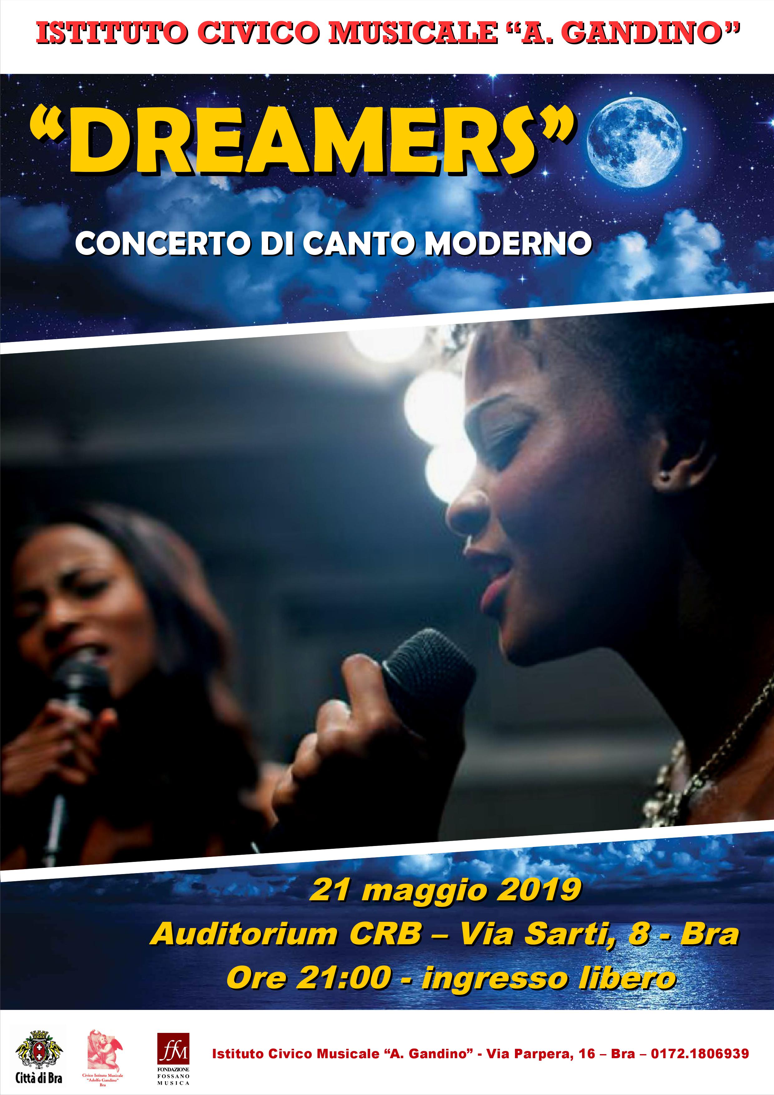 Durante il concerto “Dreamers” di martedì 21 le docenti Chiara Rosso, Erika Santoru e Giulia Cavallera si esibiranno in brani di artisti nazionali e internazionali, insieme agli allievi delle classi di canto moderno e con la collaborazione dei docenti Dario Littera (Chitarra), Andrea Stefenell (pianoforte, tastiera), Marco Castellano (basso elettrico), Carlo Gaia (batteria).