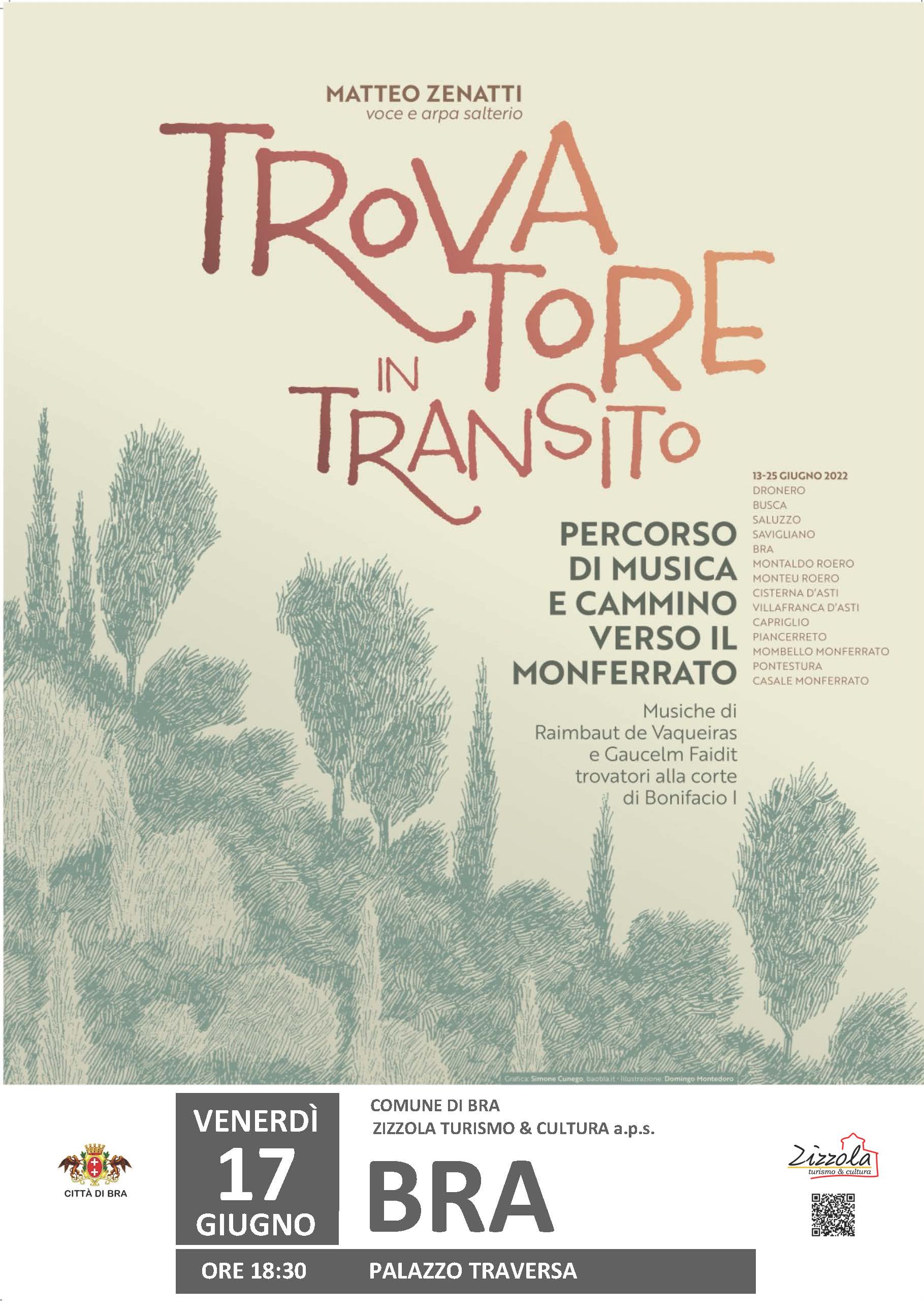 Ripercorrere la orme dei trovatori francesi che tra il 1100 e il 1200 d.C. giunsero nelle corti del Piemonte. Questa l’idea del veronese Matteo Zenatti, tenore madrigalista e insegnante di canto antico, che grazie al supporto di Espaci Occitan, Terres Monviso, e del Circolo culturale “I Marchesi del Monferrato”, ha avviato un percorso itinerante intitolato “Trovatore in transito”, che lo vedrà muoversi tra il Cuneese e il Monferrato a piedi, con in spalla zaino e arpa ricostruita secondo miniature duecentesche, spostandosi di luogo in luogo e offrendo una performance nelle sere d’arrivo. Un percorso che farà tappa anche a Bra.