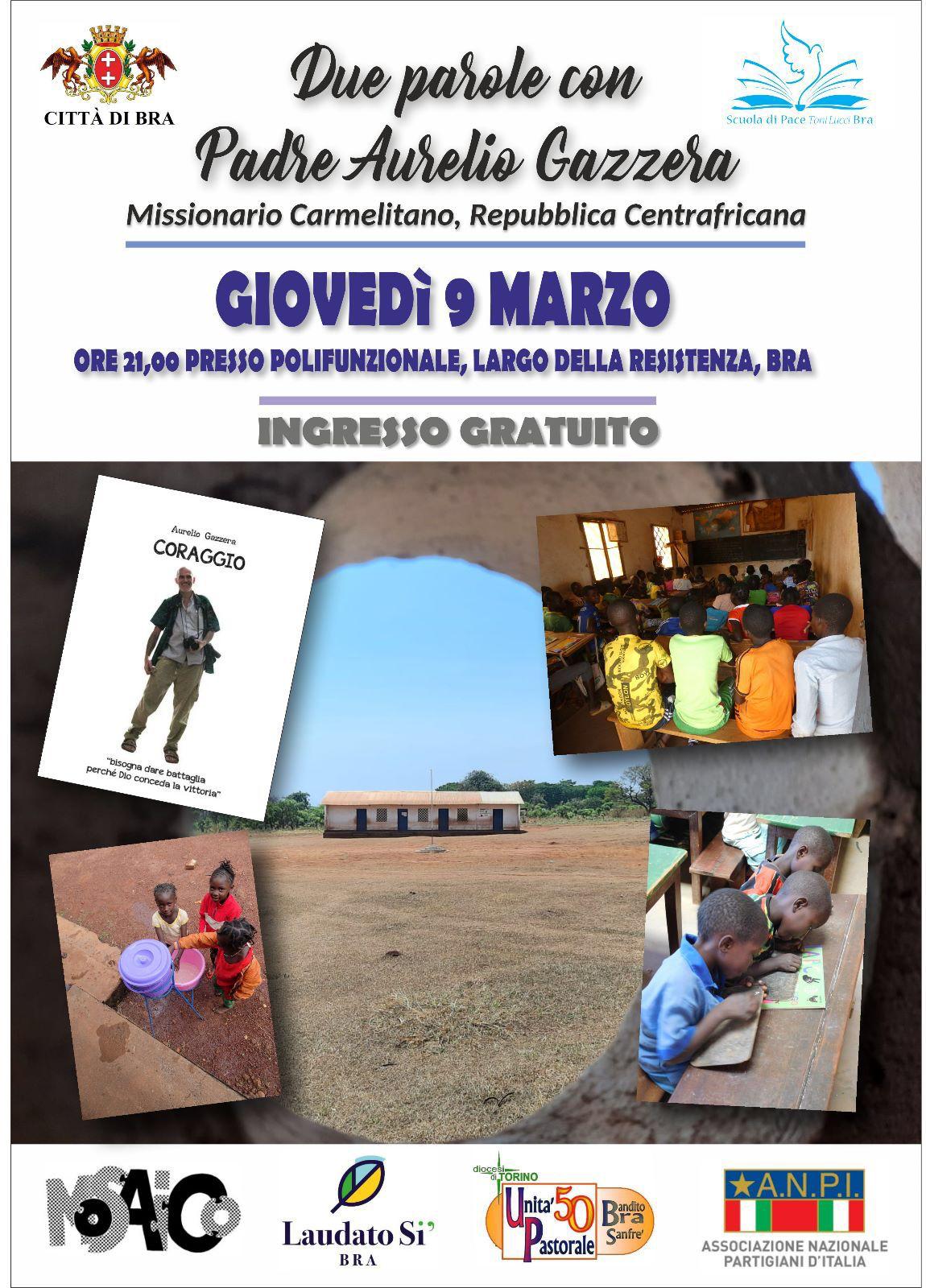 Così, venerdì 9 marzo 2023 alle 21, presso la sala conferenze del Centro Arpino di largo della resistenza, si terrà l’incontro con padre Aurelio Gazzera, missionario carmelitano originario di Cuneo. L’appuntamento, intitolato “L’uomo che ha piegato i fucili”, è organizzato in collaborazione con la Comunità Laudato Si’ di Bra, l’associazione Mosaico, l’Unità pastorale 50 e l’Anpi e giunge in corrispondenza della pubblicazione del libro di padre Gazzera “Coraggio”, nel quale racconta la sua esperienza in Centro Africa con i guerriglieri e le popolazioni inermi.