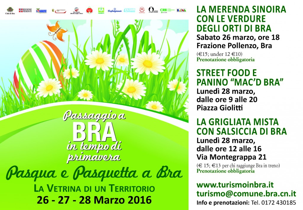 Segna l’arrivo della bella stagione l’immancabile appuntamento con il “Passaggio a Bra in tempo di primavera”, la storica rassegna di Pasqua e Pasquetta che porta in scena nella città slow tra Langhe e Roero il meglio del gusto e della tradizione. Tra arte, tavola, turismo, tradizioni e novità, tantissimi gli eventi in programma dal 26 al 28 marzo 2016 a Bra: la 142° edizione della Fiera zootecnica del Bovino piemontese, la Mostra dell’Artigianato artistico, la transumanza, un goloso trekking tra gli orti, ludobus e fattoria in piazza, Tre Lilu in concerto, Mercato della Terra … e molto, molto altro ancora.