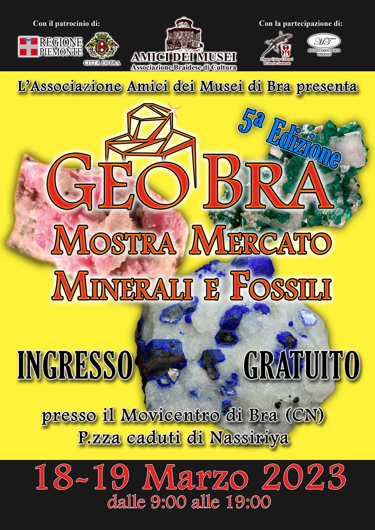 Torna sotto la Zizzola, dopo il successo delle prime quattro edizioni, “GeoBra”, la mostra mercato di minerali, fossili e reperti naturali in programma sabato 18 e domenica 19 marzo 2023 negli spazi del Movicentro, in piazza Caduti di Nassiriya (a fianco della stazione ferroviaria).