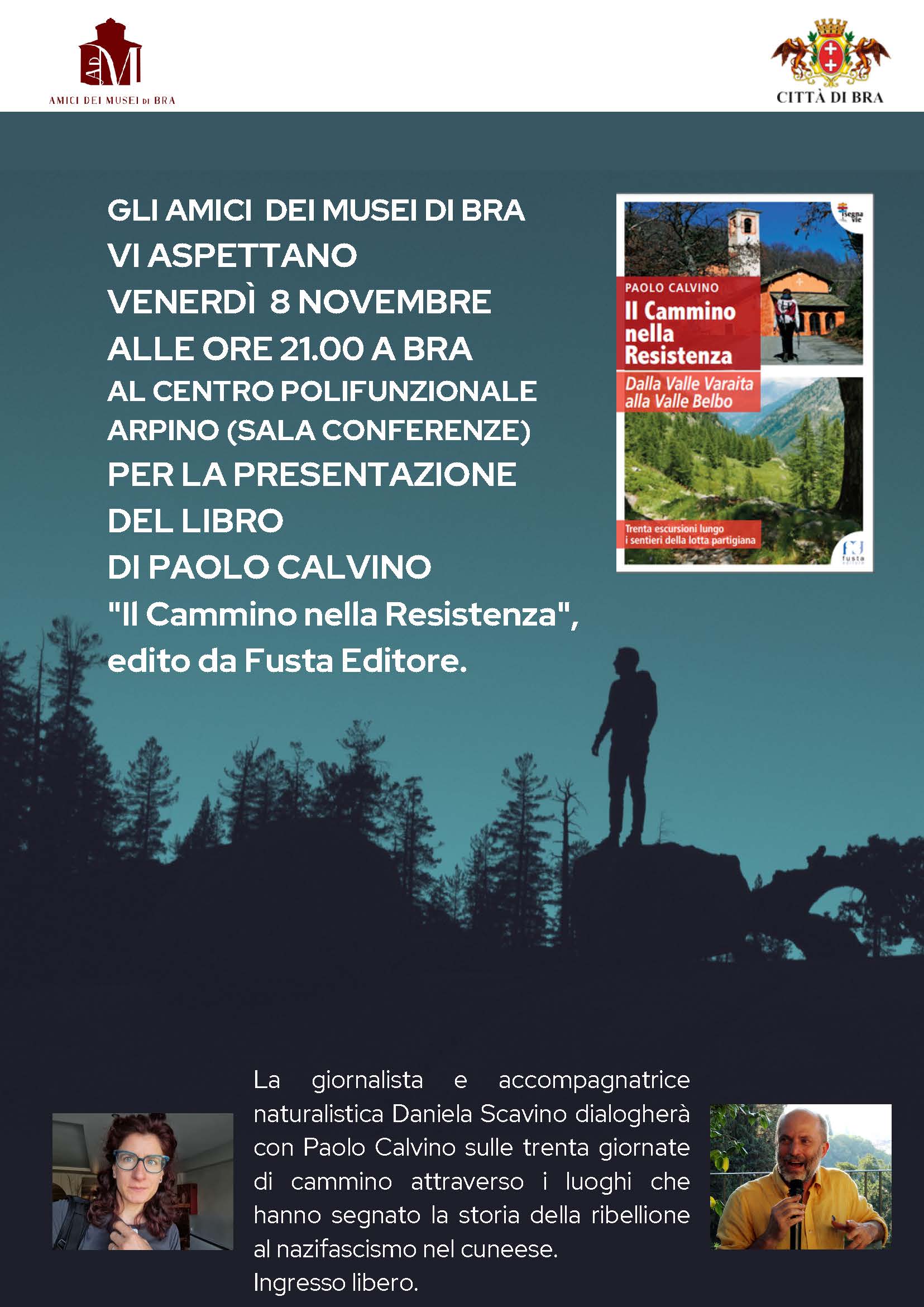 Venerdì 8 novembre alle 21, presso il centro polifunzionale Arpino (sala conferenze), si terrà la presentazione del libro di Paolo Calvino “Il Cammino nella Resistenza”, edito da Fusta Editore.