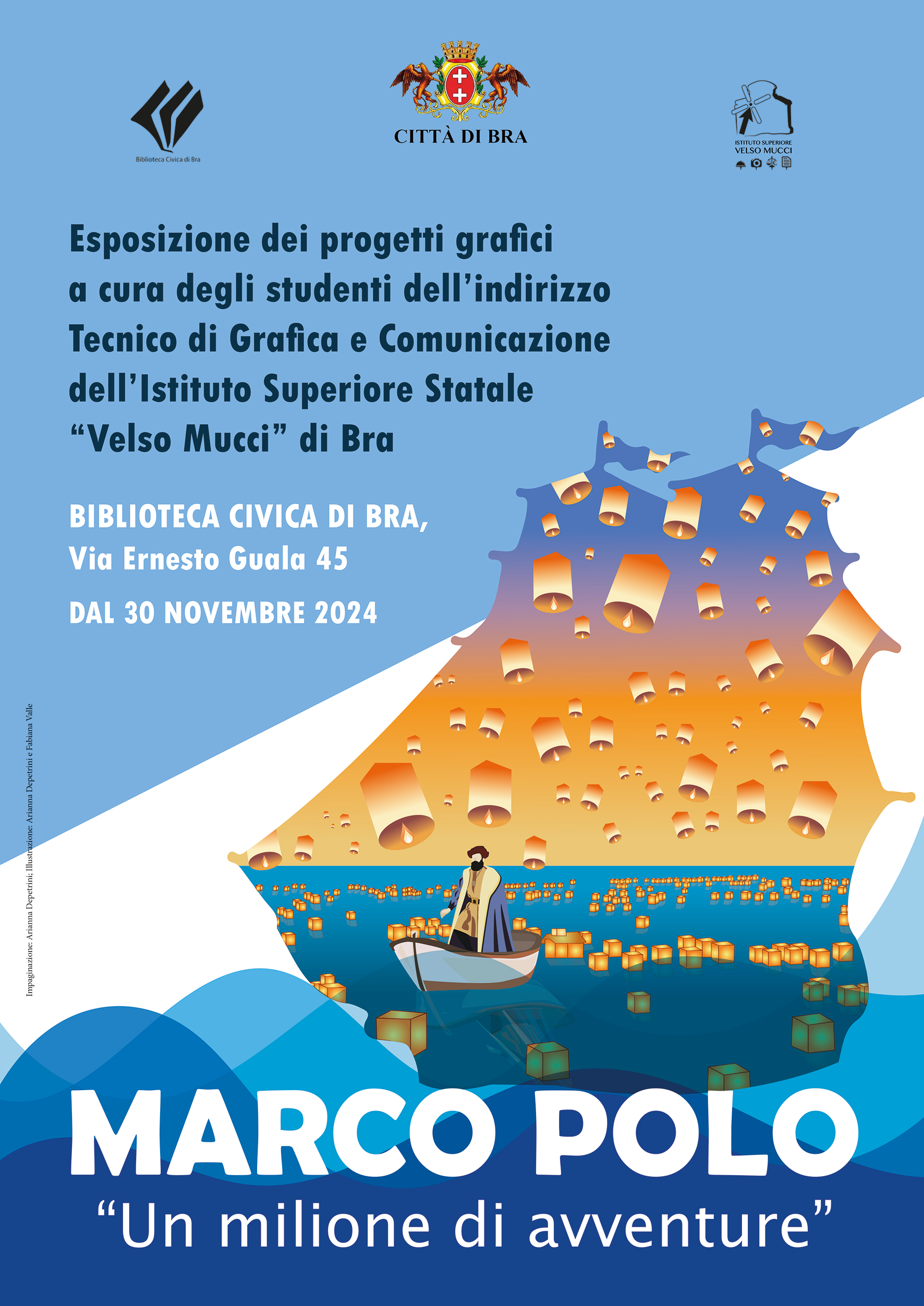 In occasione dello scorso “Salone del Libro per Ragazzi” dedicata ai viaggi di Marco Polo, le classi dell’ultimo triennio dell’indirizzo tecnico grafico dell’Istituto “Velso Mucci” di Bra hanno partecipato all’evento con l’esposizione di grafiche editoriali e altre creazioni. La ricerca delle fonti utili per l’elaborazione dei progetti è avvenuta in collaborazione con la biblioteca civica di Bra, all’interno di un ambiente piacevole che ha permesso agli studenti di sviluppare una metodologia di ricerca che ha favorito l’esplorazione, la raccolta di informazioni, le attività di gruppo e l’elaborazione dei materiali e grafiche.