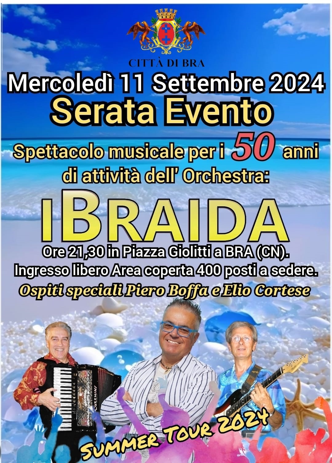 Bra prepara un grande appuntamento musicale. Mercoledì 11 settembre 2024, a partire dalle 21,30, piazza Giolitti ospiterà infatti l’esibizione della più longeva orchestra della provincia di Cuneo, “I Braida”. Si tratta di un gruppo musicale nato nel lontano 1974, che ne corso di questo mezzo secolo ha fatto ballare e divertire diverse generazioni di cuneesi. In questi anni l’orchestra si è anche esibita in diverse occasioni all’estero, in villaggi turistici e su navi da crociera, facendosi conoscere ben oltre i confini del Cuneese.